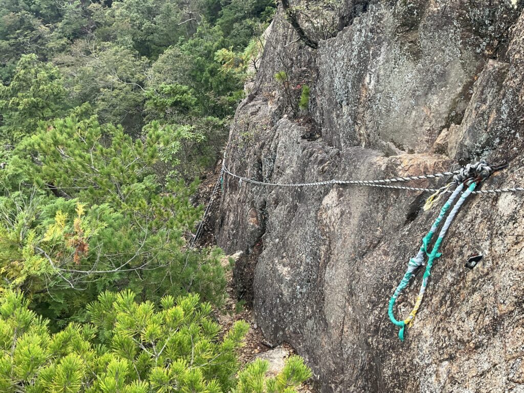 岩場ではないものの、岩場の脇の急斜面を下っていく