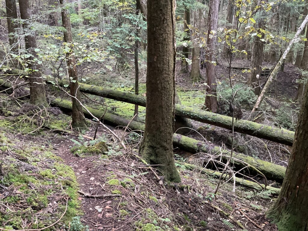 よいしょと倒木二本の間をまたいでくぐって、