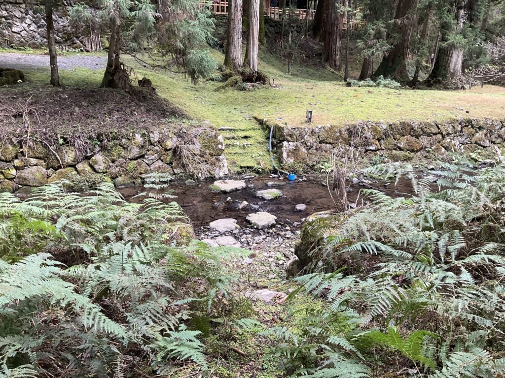 飛び石で川を渡ったら奥の院の裏に到着