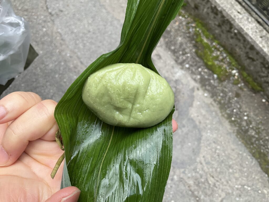 ふんわりジューシーな麩饅頭にヨモギの香り