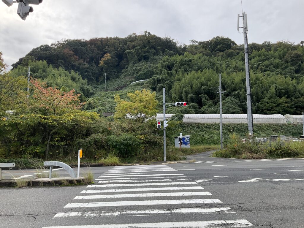 道路沿いを歩いて信号渡ったらお疲れ山!