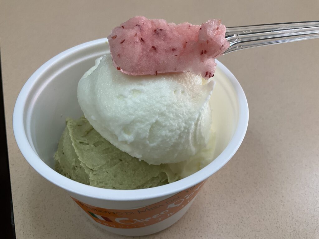 スイーツはジェラート(ミルクとピスタチオ)