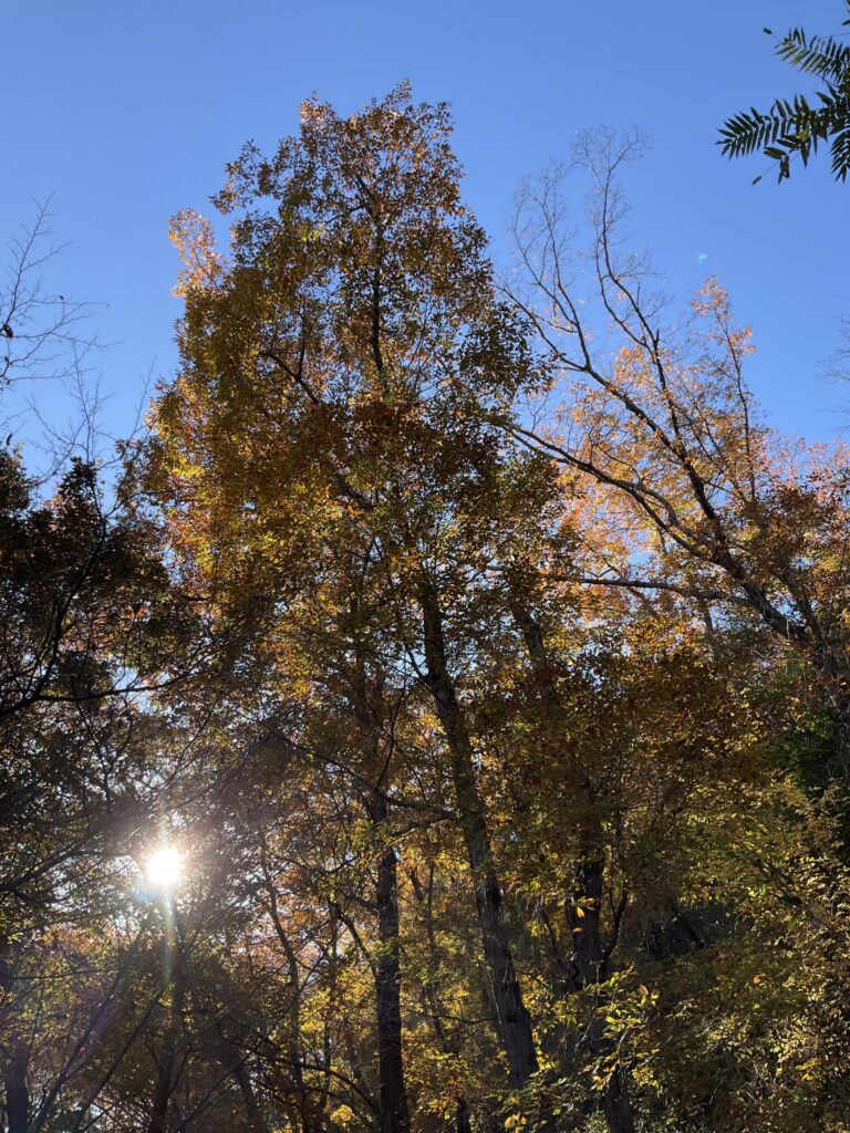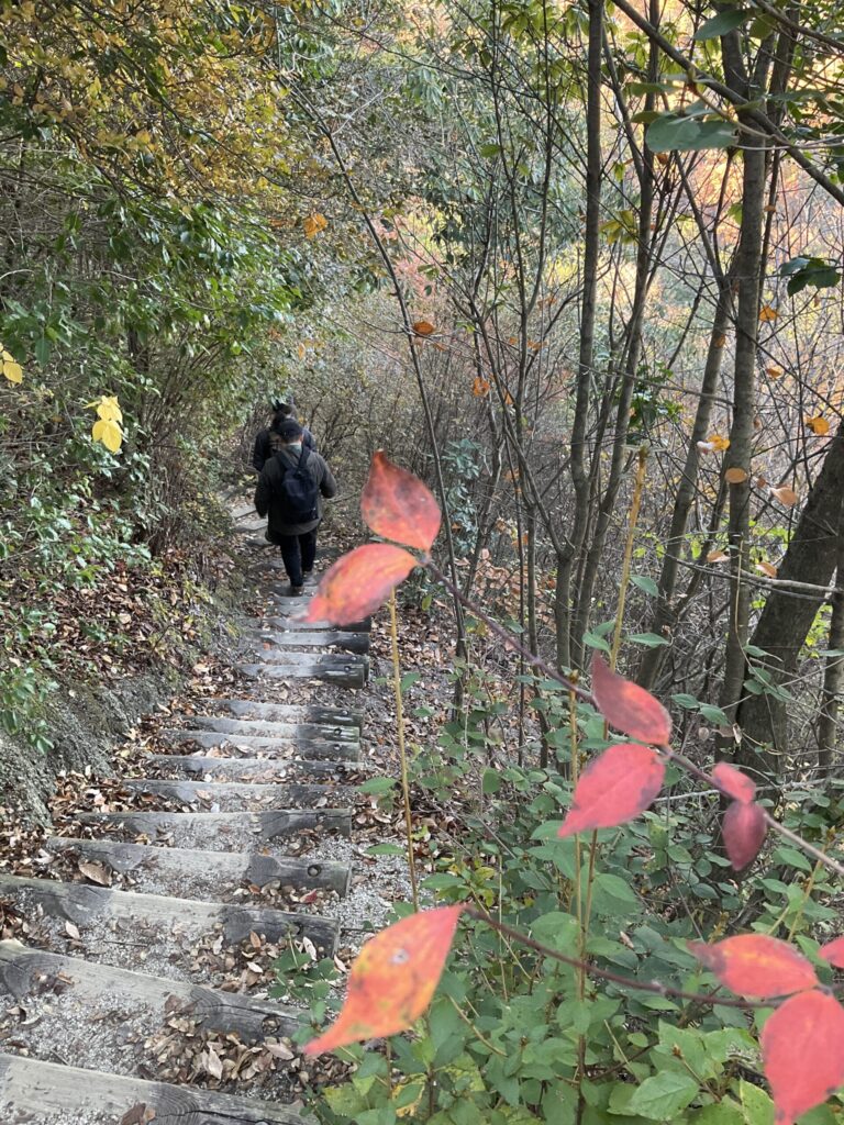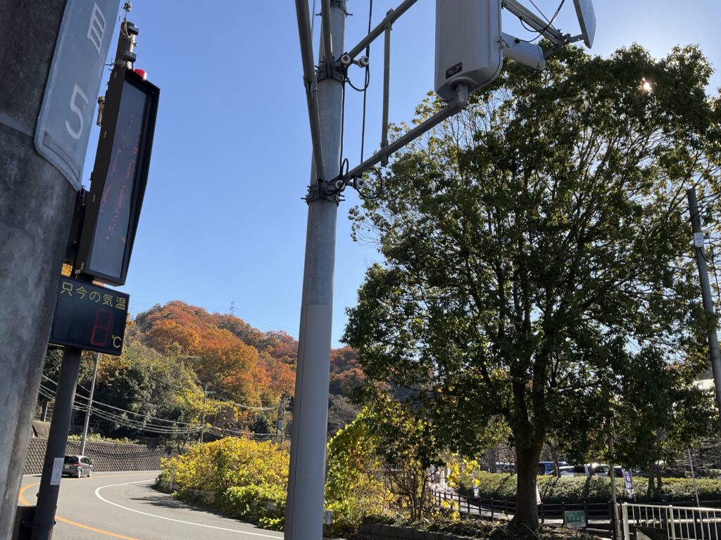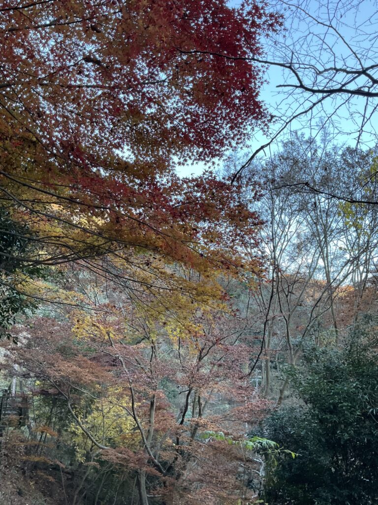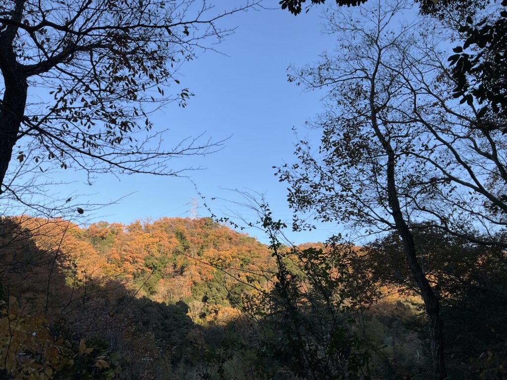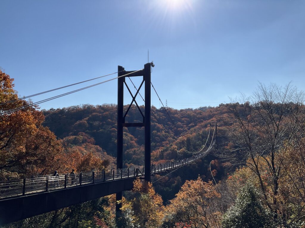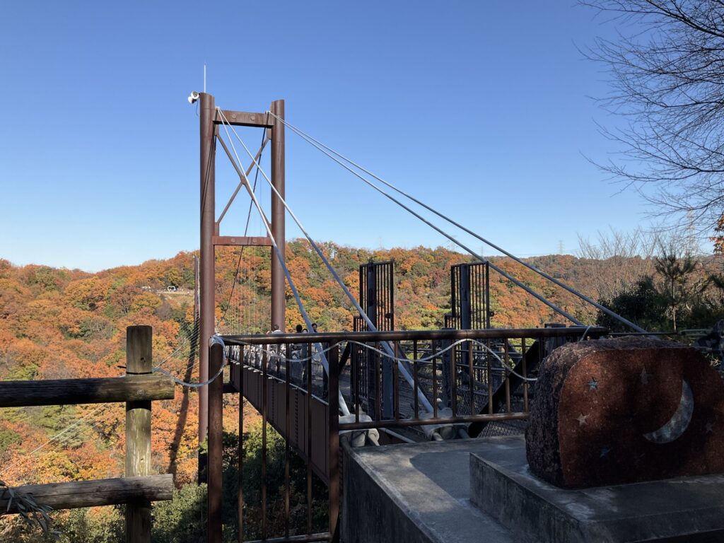 ここからは紅葉の中の吊り橋や大阪北部が眺められる