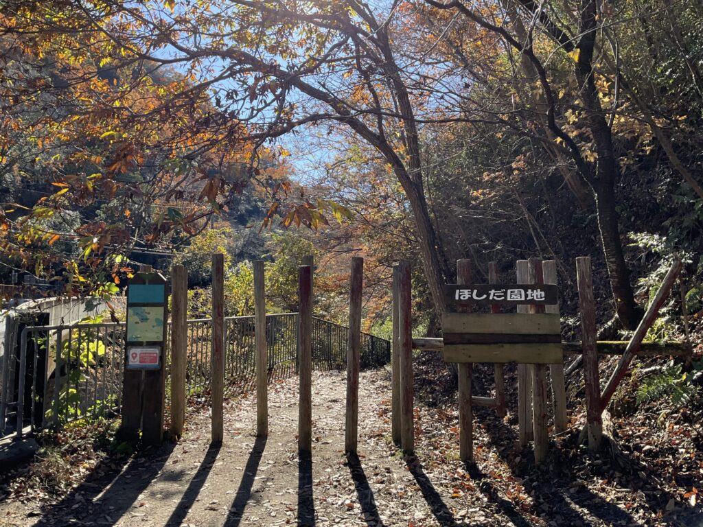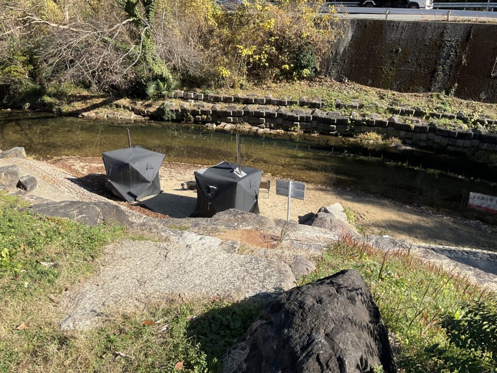 川沿いにある星の里いわふねというキャンプ場、BBQ場の横を歩く