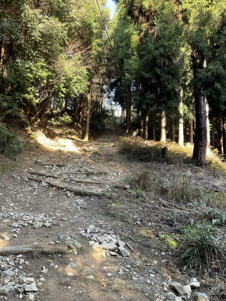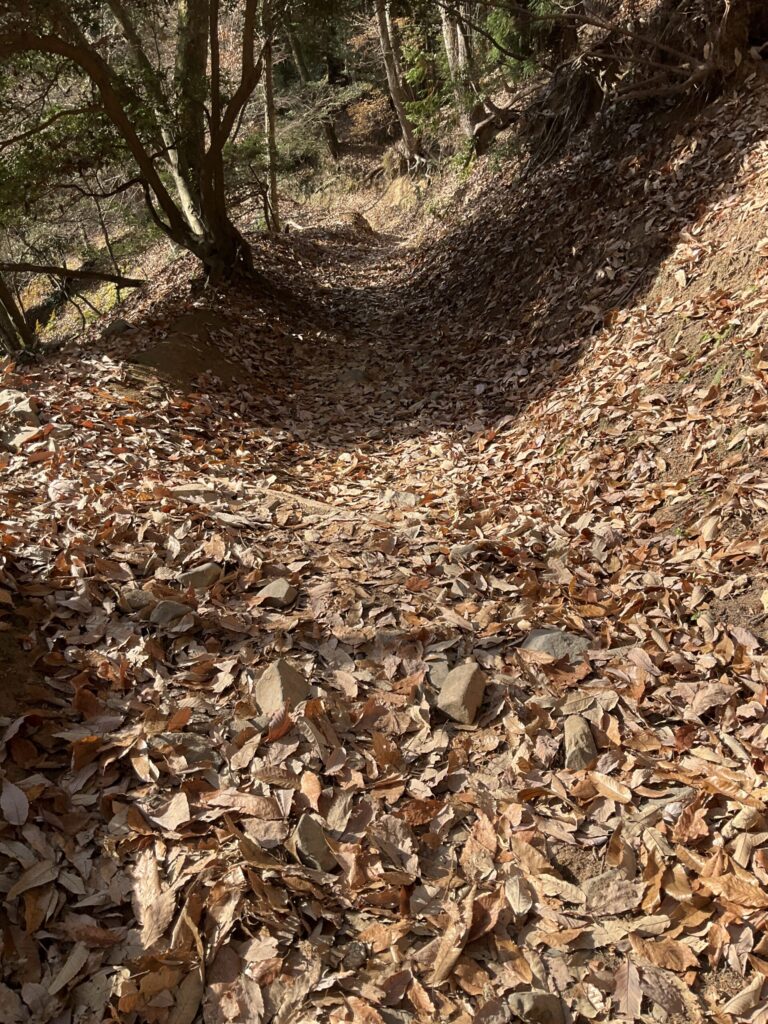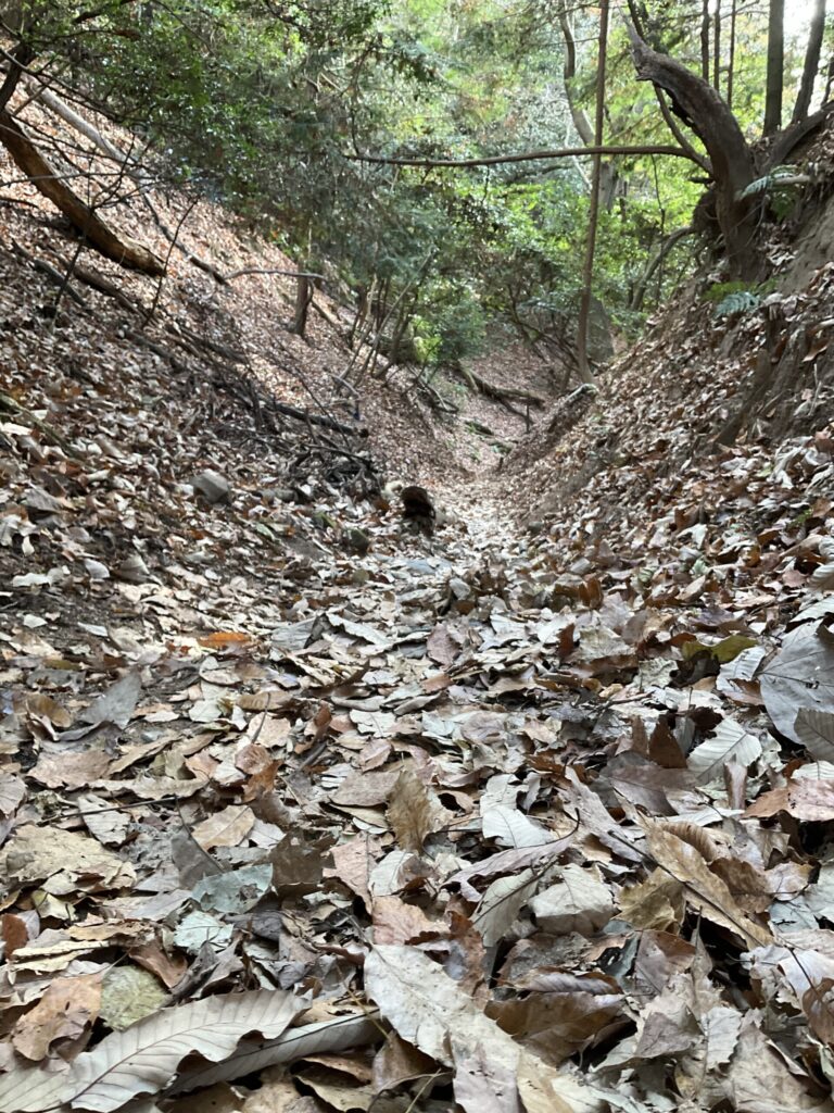 V字になってる登山道に落ち葉が溜まるんやね