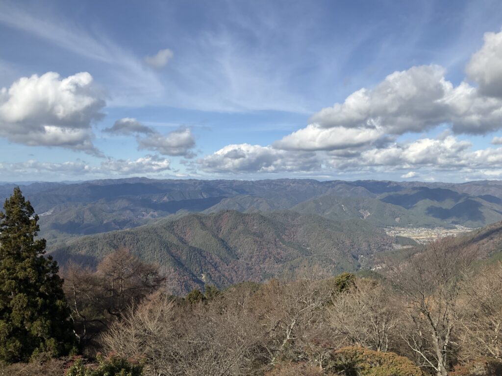 京都・滋賀方面の山々と琵琶湖が見えるパノラマ
