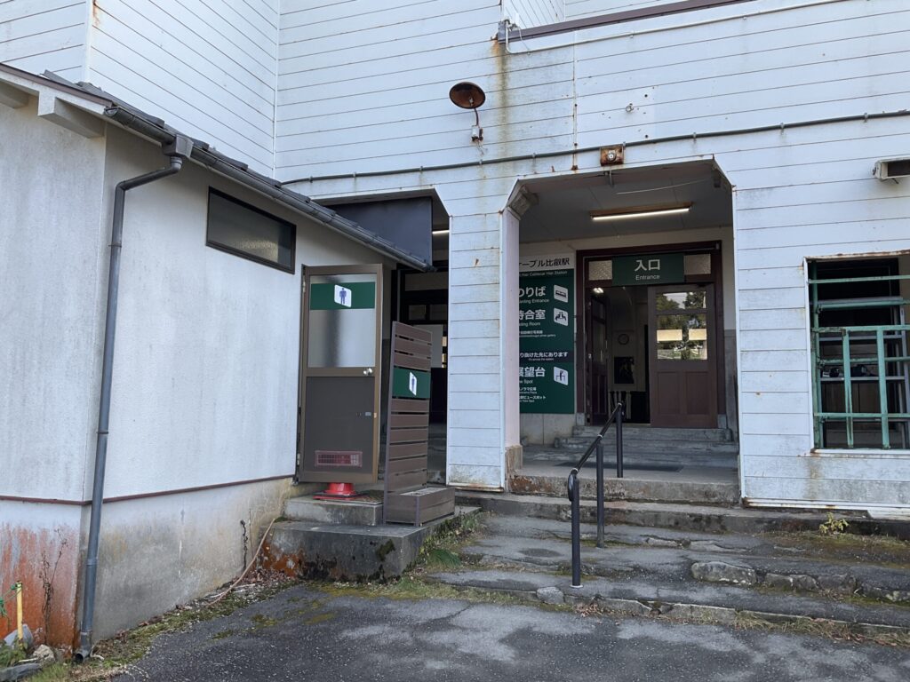ケーブル駅の待合室はストーブがあって暖かい