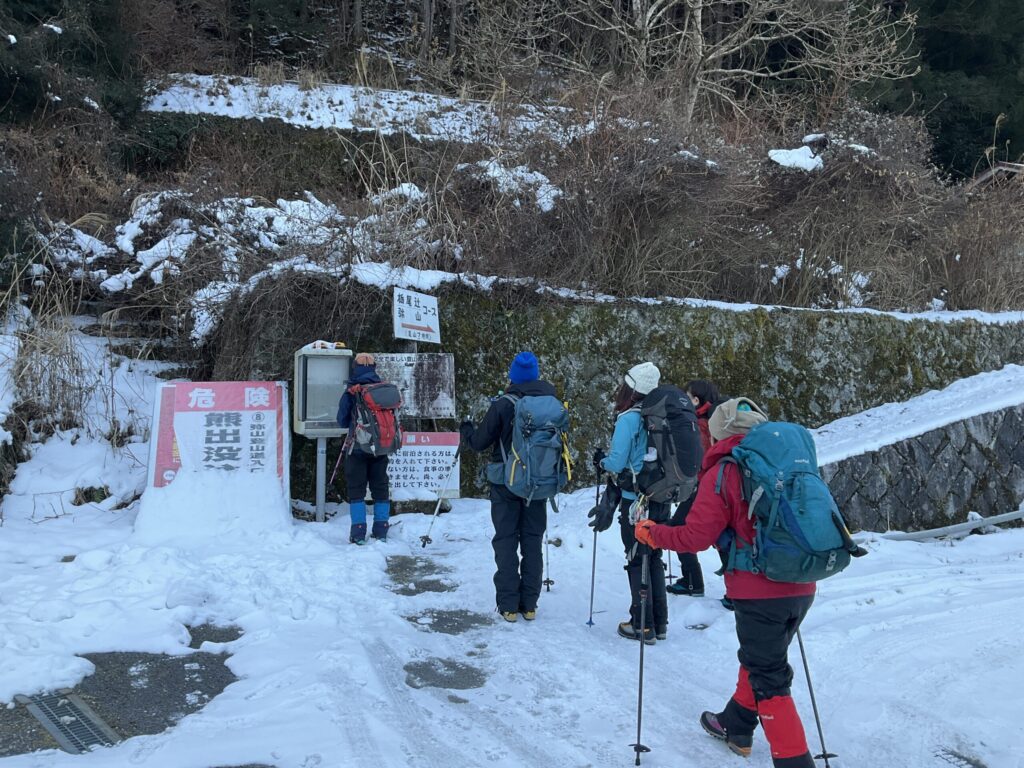 登山口から早速雪