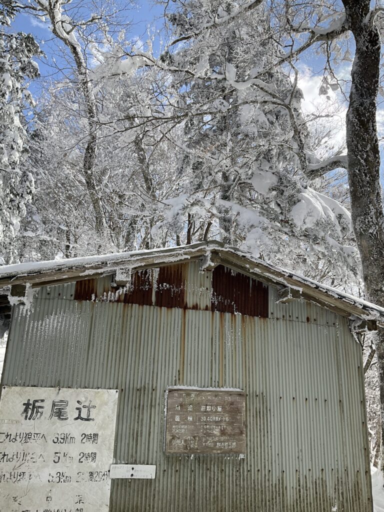 朽ちかけた避難小屋には入らず