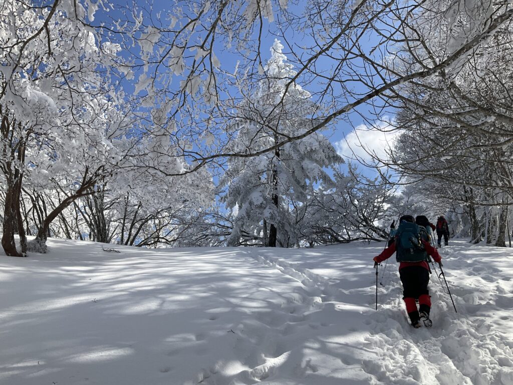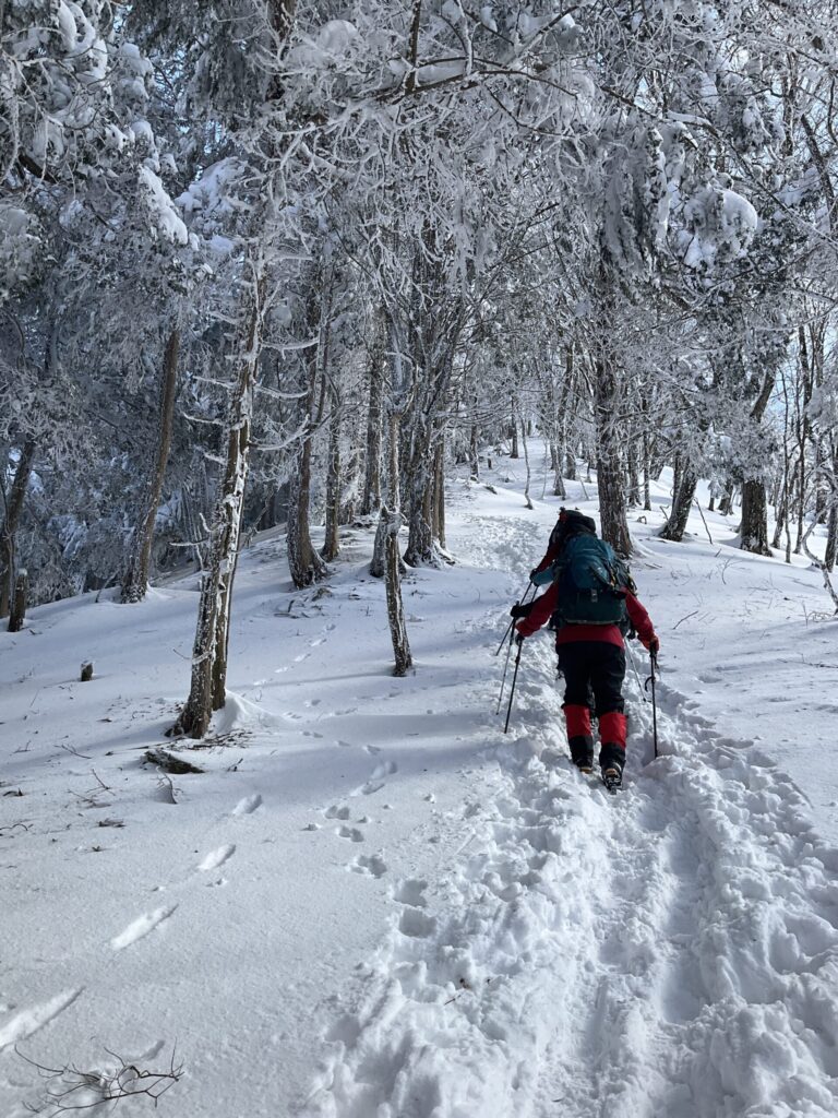 フカフカの雪やからノーアイゼンで進む