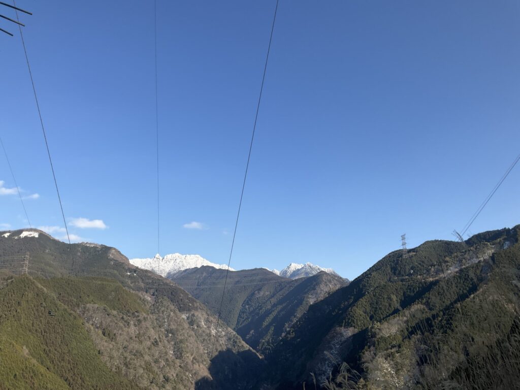 白くなった大日山、稲村ヶ岳や