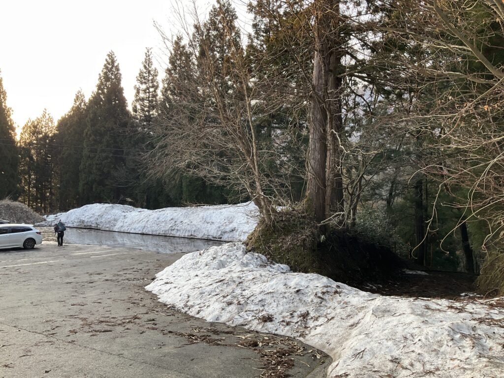 林道にはびっしり雪が残ってる