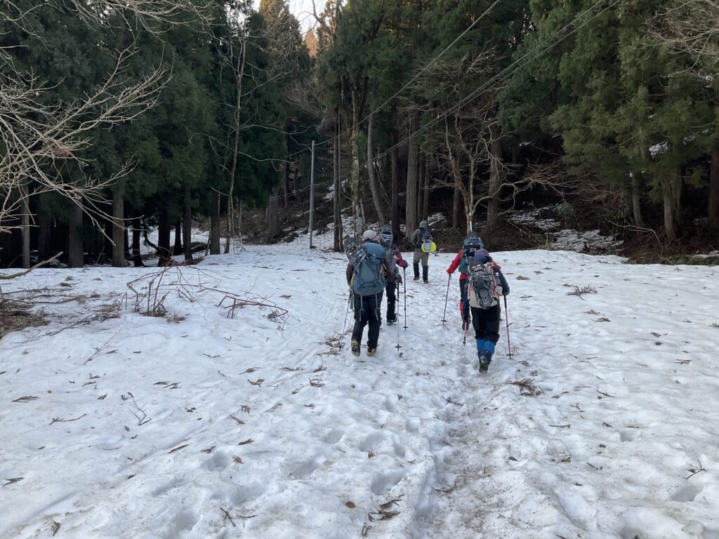 しばらくは雪のない登山道を登る