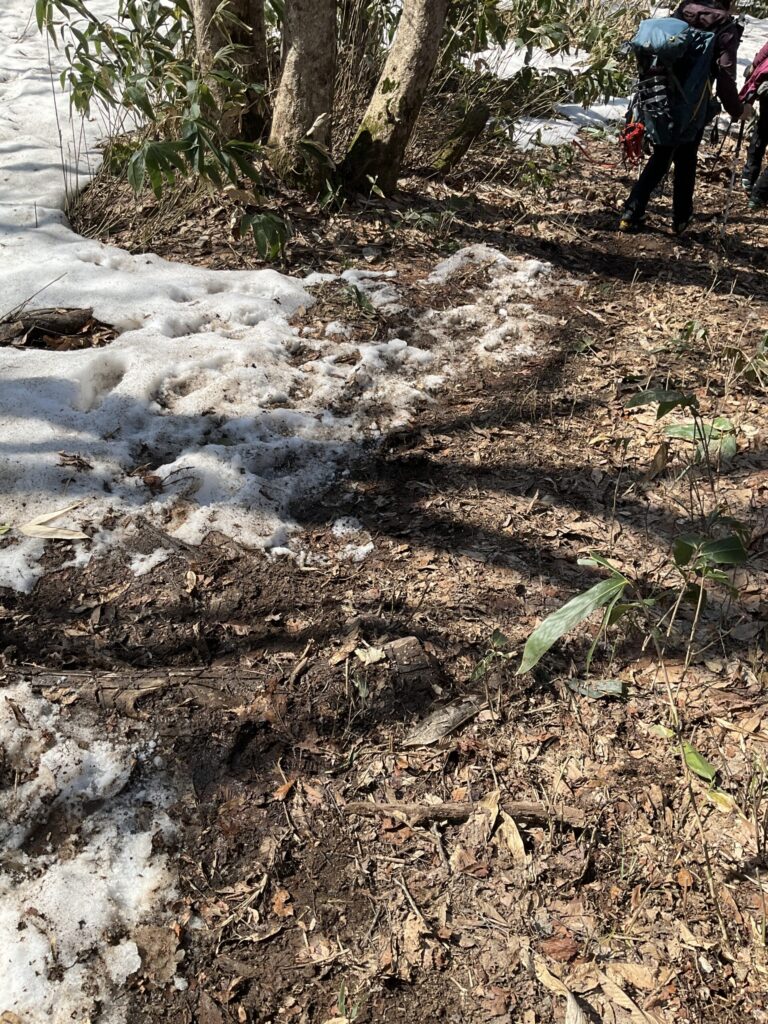 今度は雪解けドロドロの登山道