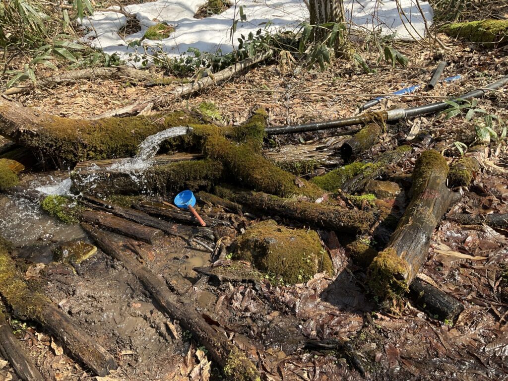 途中の水場でアイゼン水洗い